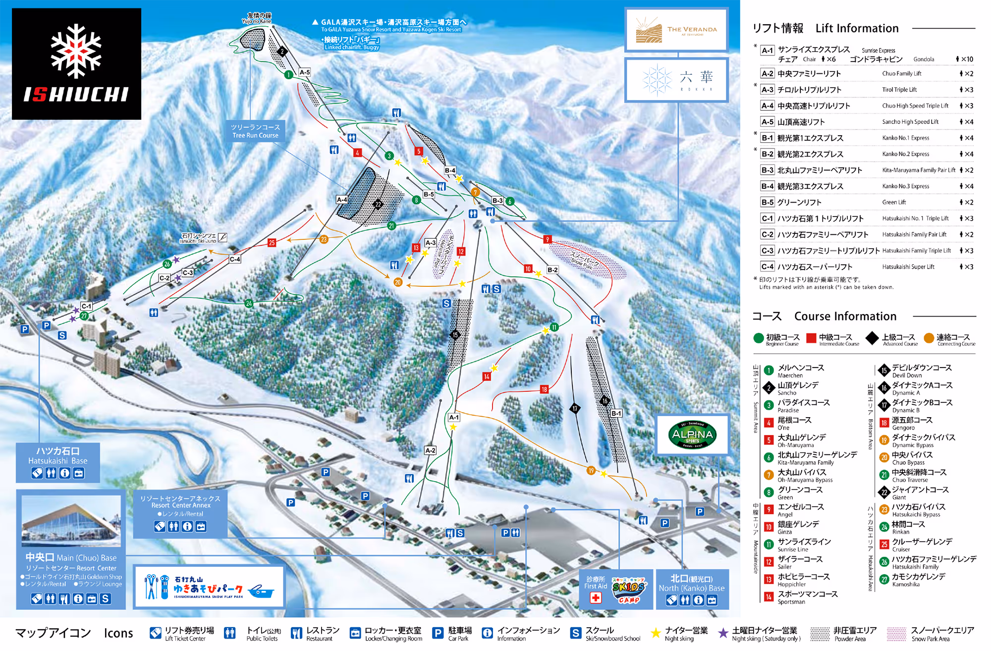 石內丸山滑雪場(Ishiuchi Ski Resort)位於越後湯澤地區,搭乘新幹線至越後湯澤車站後,轉乘免費接駁巴士,約13至17分鐘內即可抵達。石內丸山滑雪場近年新建的纜車Sunrise Express是目前湯澤地區唯一一座有提供吊椅纜車加熱式座墊的纜車,同時掛載箱型纜車與吊椅纜車能同時運送一般遊客與滑雪遊客,山上著名的網紅景點-圓頂透明帳棚更是一大特色,享受滑雪休憩之餘,可以在這邊一邊欣賞風景一邊看其他滑雪愛好者挑戰跳台、Upipe等地形,如果不滑雪,也可以在這邊享受甜點度過悠閒很Chill的一天。